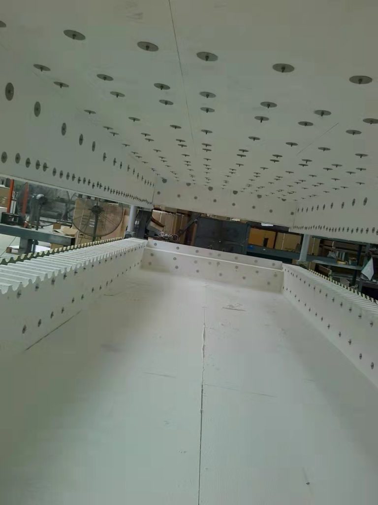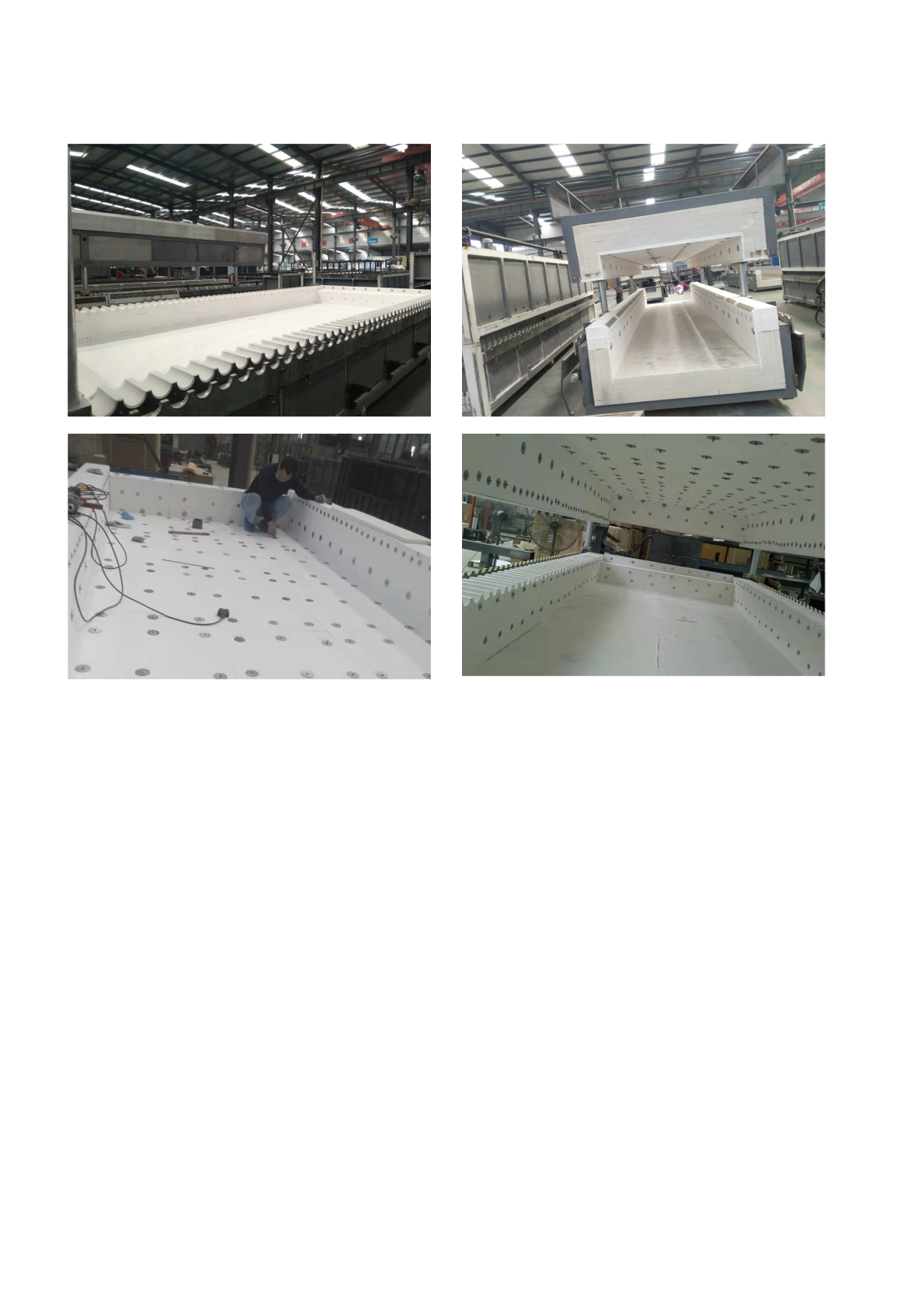 This configuration provides outstanding thermal insulation, reduces furnace shell temperature, and helps achieve uniform heat distribution — essential for consistent glass quality during tempering and bending processes.