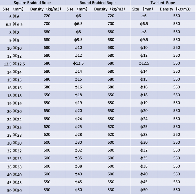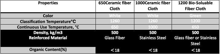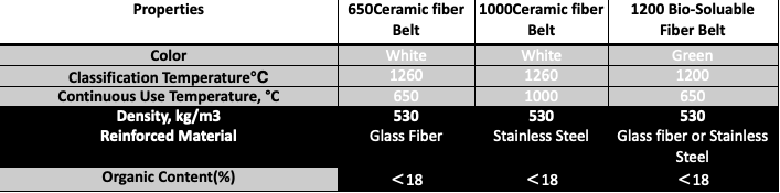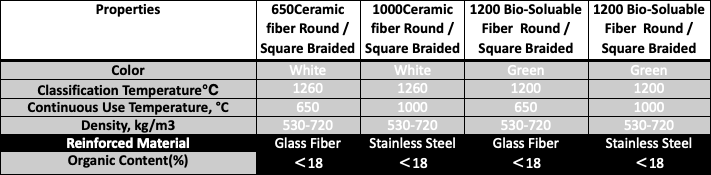 Ceramic Fiber & Bio-solutable Fiber Round & Square Braided Rope technical data sheet