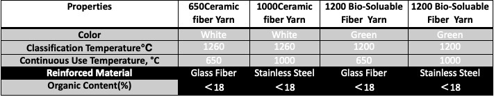 Ceramic Fiber & Bio-solutable Fiber Yarn technical data sheet
